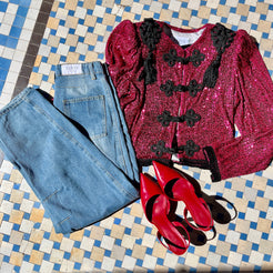 VESTE GOYESQUE À PAILLETTES FUCHSIA