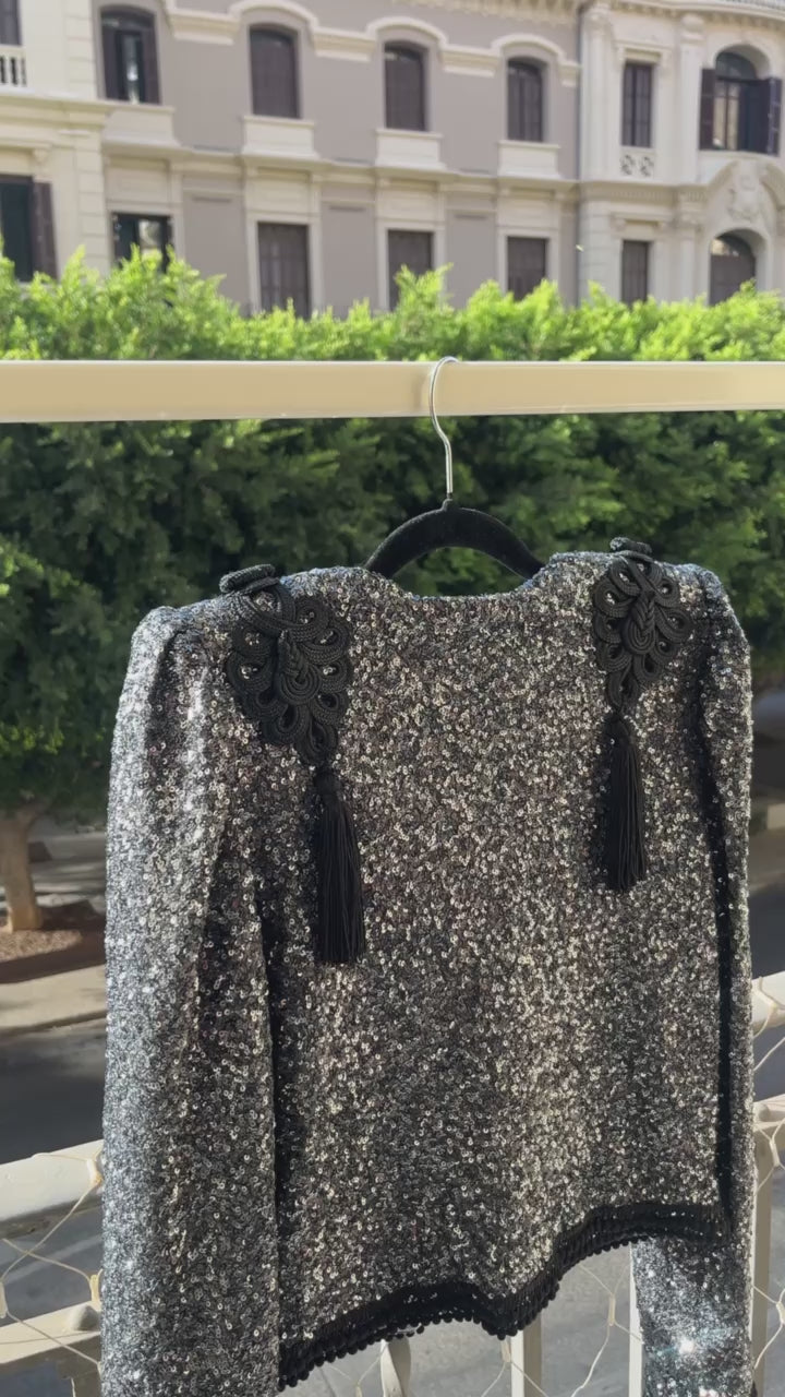 Notre Goyesca en sequins gris : une structure bien définie, des finitions cousues main et un fini métallique qui s'a...