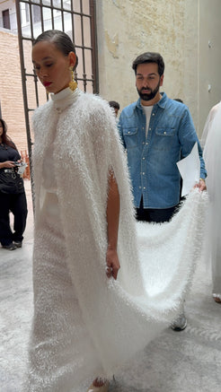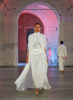 ENSEMBLE JUPE ET HAUT AVEC CAPE EFFILOCHÉE