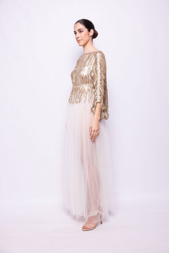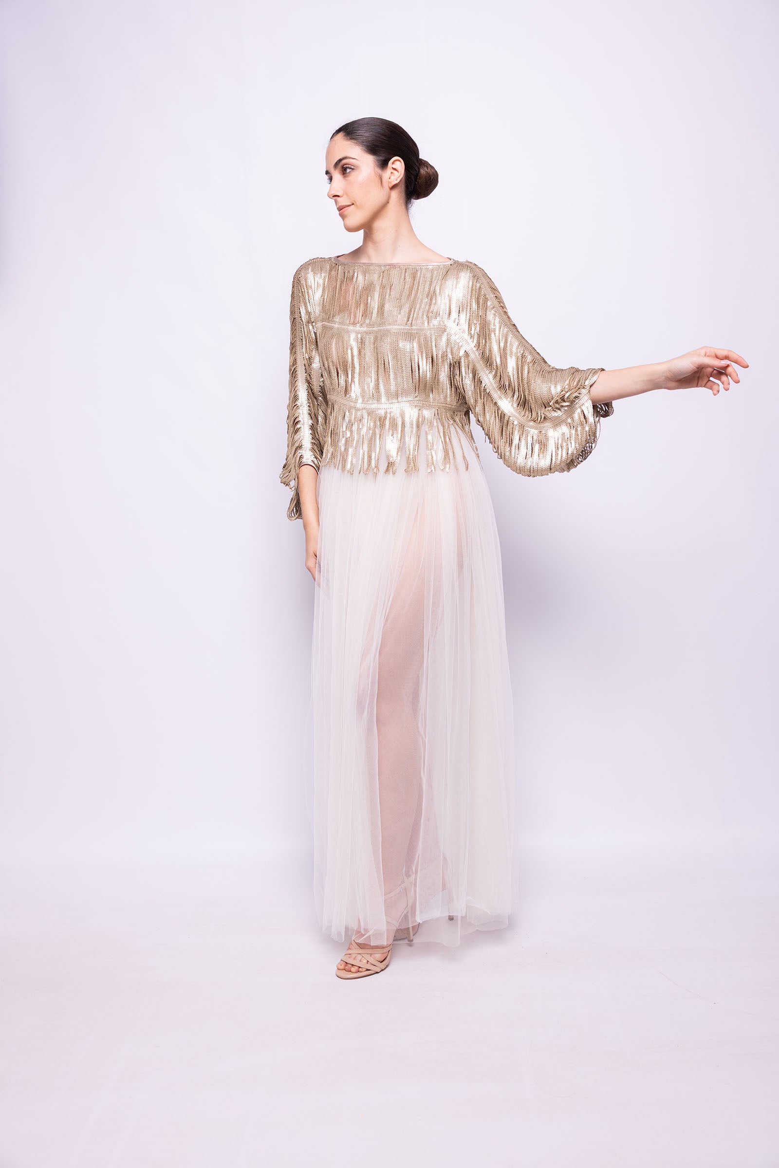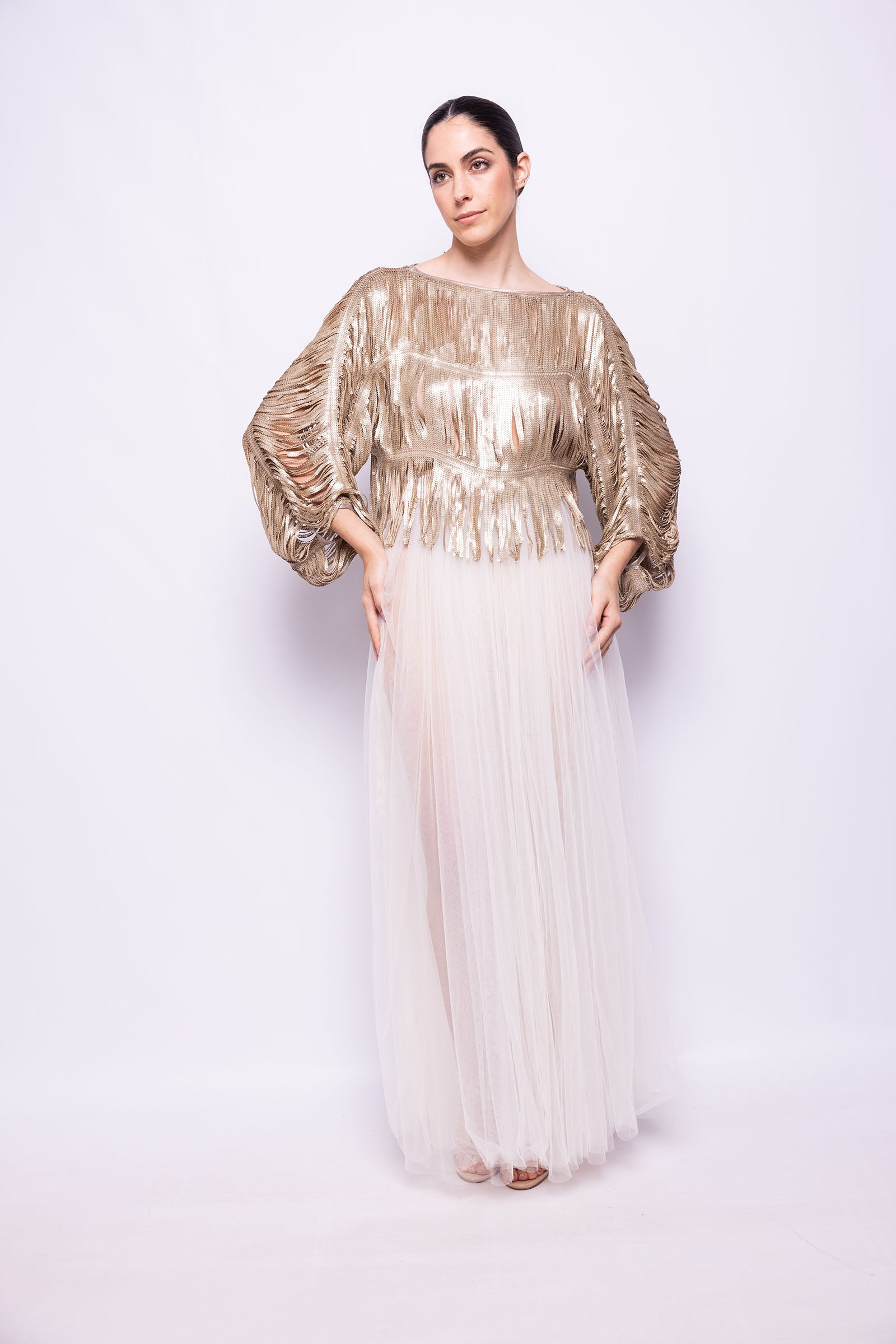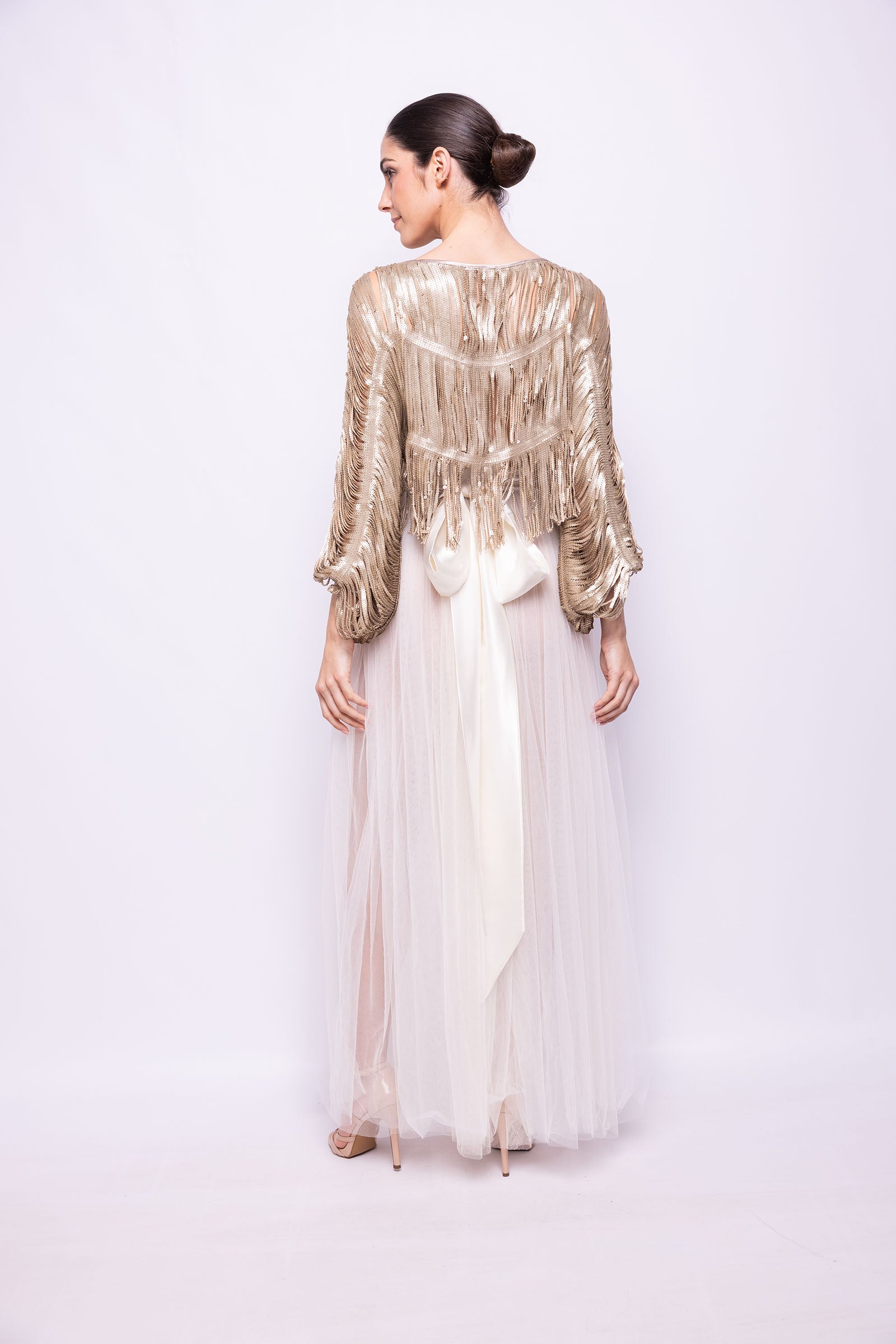 La jupe en tulle ivoire de notre collection N7 est la pièce maîtresse d'une allure élégante et fluide. Une jupe midi...