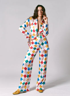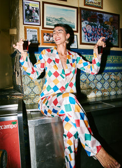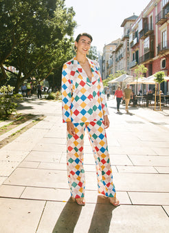 Le tailleur imprimé Málaga Patterns s'inspire de la structure colorée du Centre Pompidou, le musée parisien situé dan...