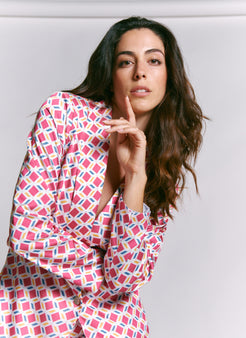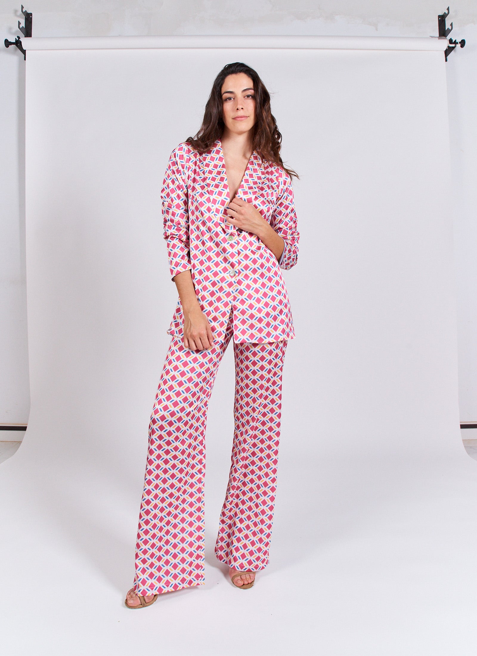 Le tailleur imprimé Málaga Patterns arbore la célèbre façade de la Calle San Juan, située au cœur du centre historiqu...