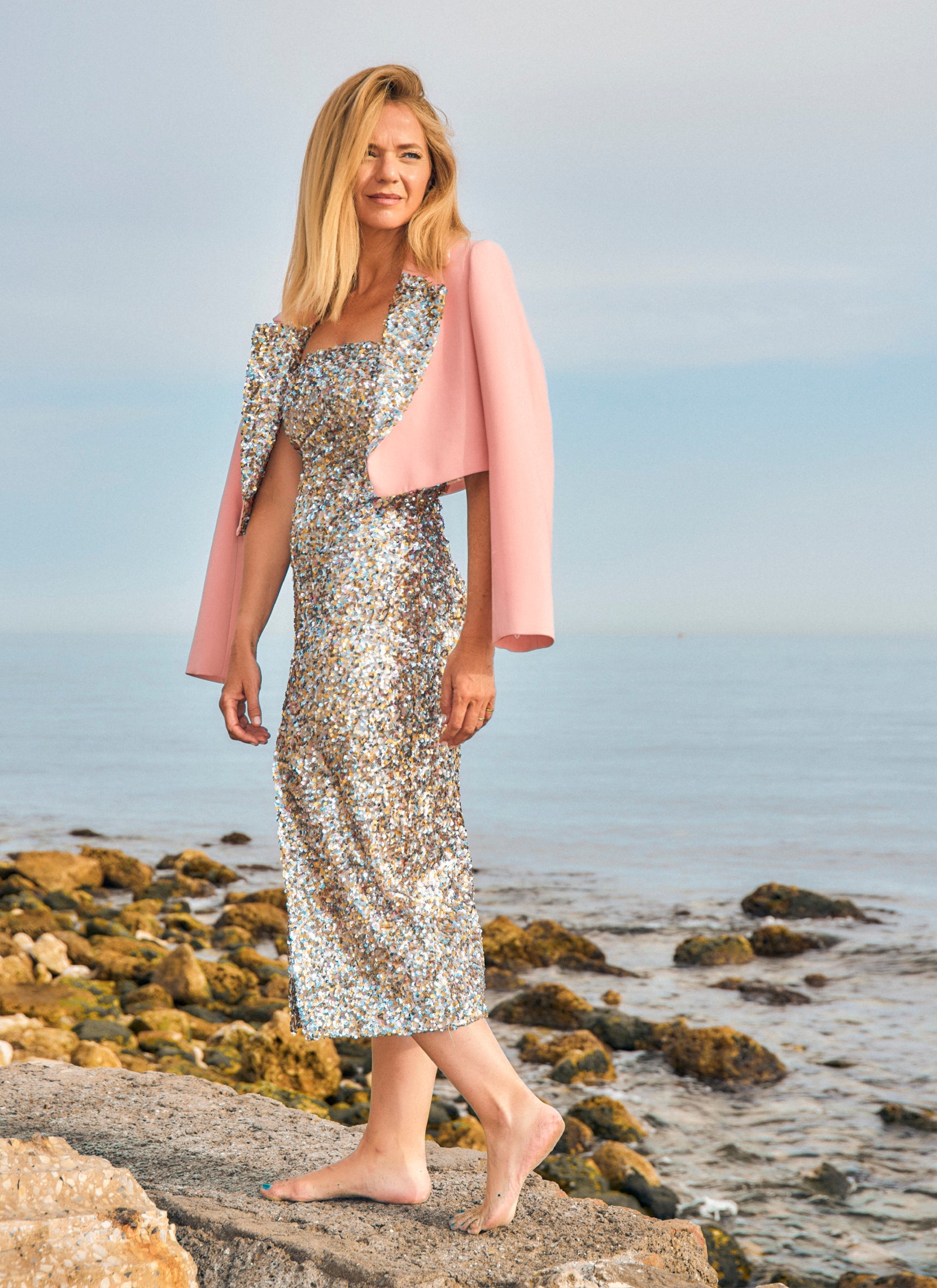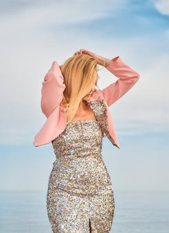 L'essence du glamour intemporel avec une touche contemporaine. Découvrez JULIA, une robe bustier à sequins vert d'...