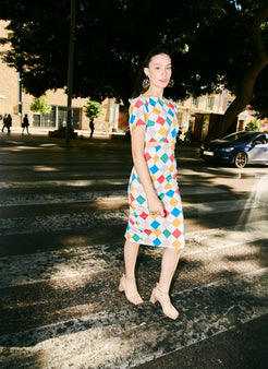 La robe imprimée Málaga Patterns s'inspire de la structure colorée du Centre Pompidou, le musée parisien situé dans l...