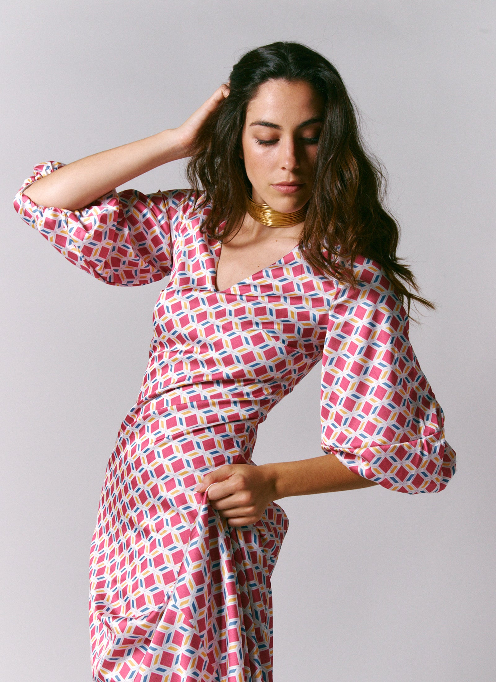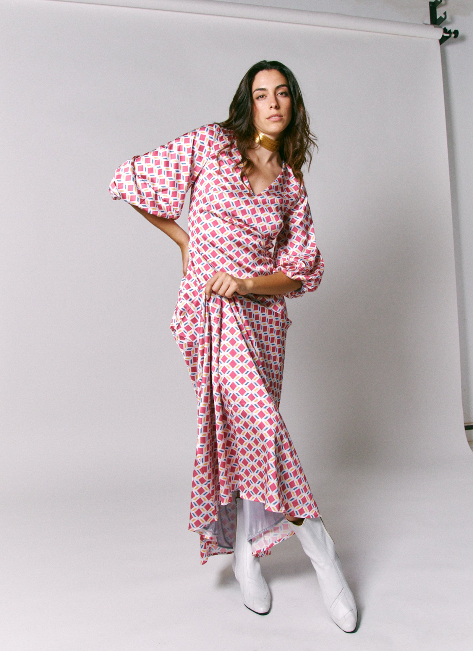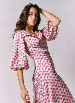 Cette robe à imprimé Málaga Patterns reproduit la célèbre façade de la Calle San Juan, située au cœur du centre histo...