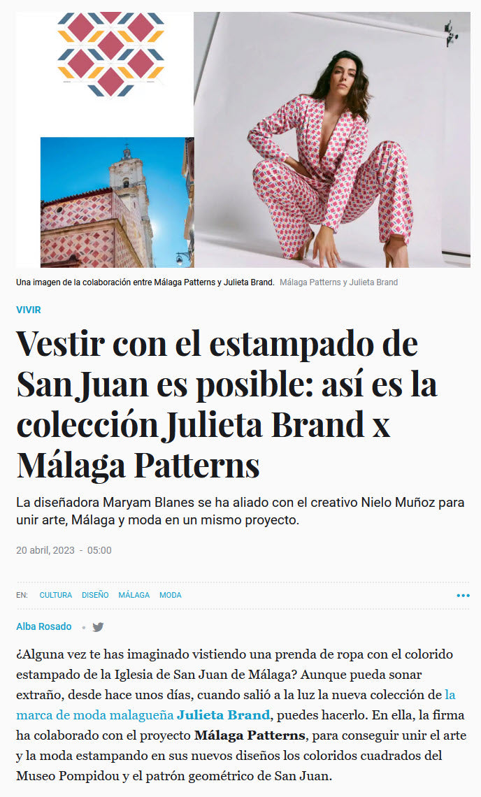 La marca de ropa Julieta Brand ha dado un paso más en su identidad local con su nuevo proyecto Málaga Patterns Collection. Noticia