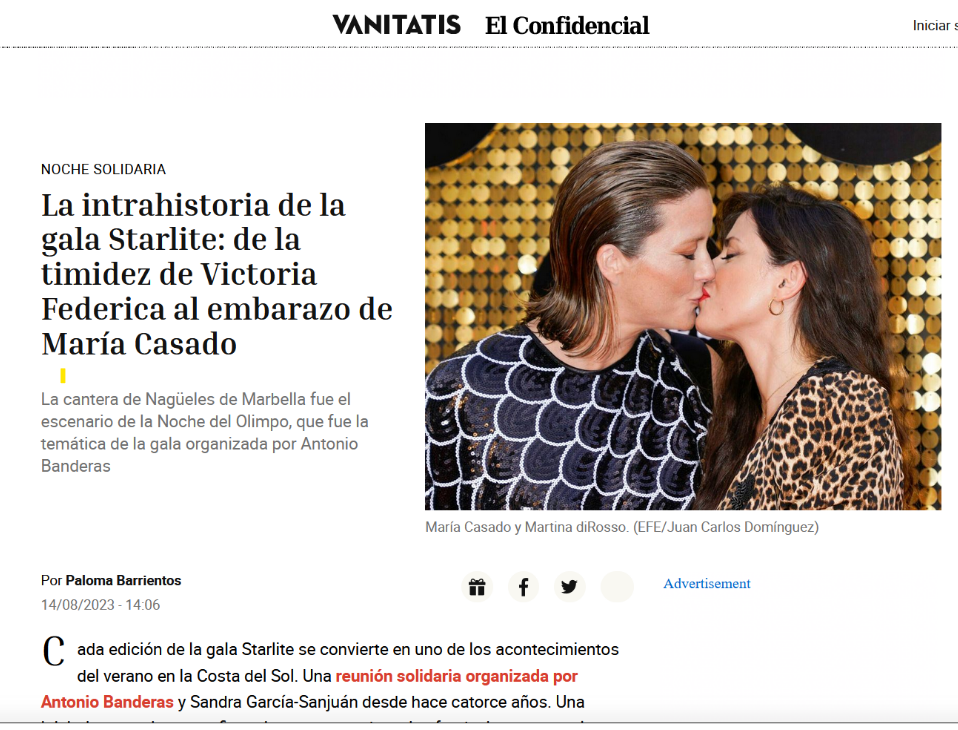 María Casado acude junto a su pareja Matina di Rosso a la Noche del Olimpo, gala organizada por Antonio Banderas en el festival Startlite de Marbella. Ambas eligieron un modelo de Julieta Brand para acudir al evento. Artículo