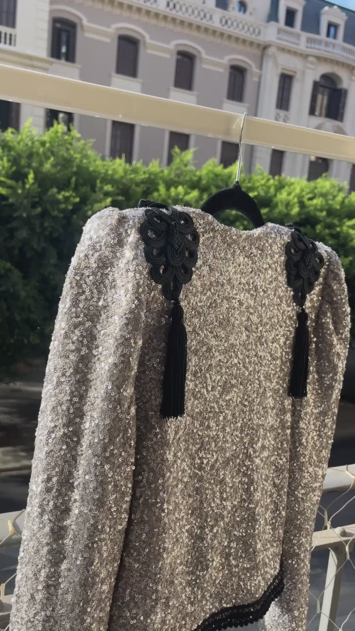 CHAQUETA GOYESCA EN LENTEJUELA PLATA
