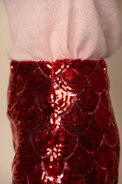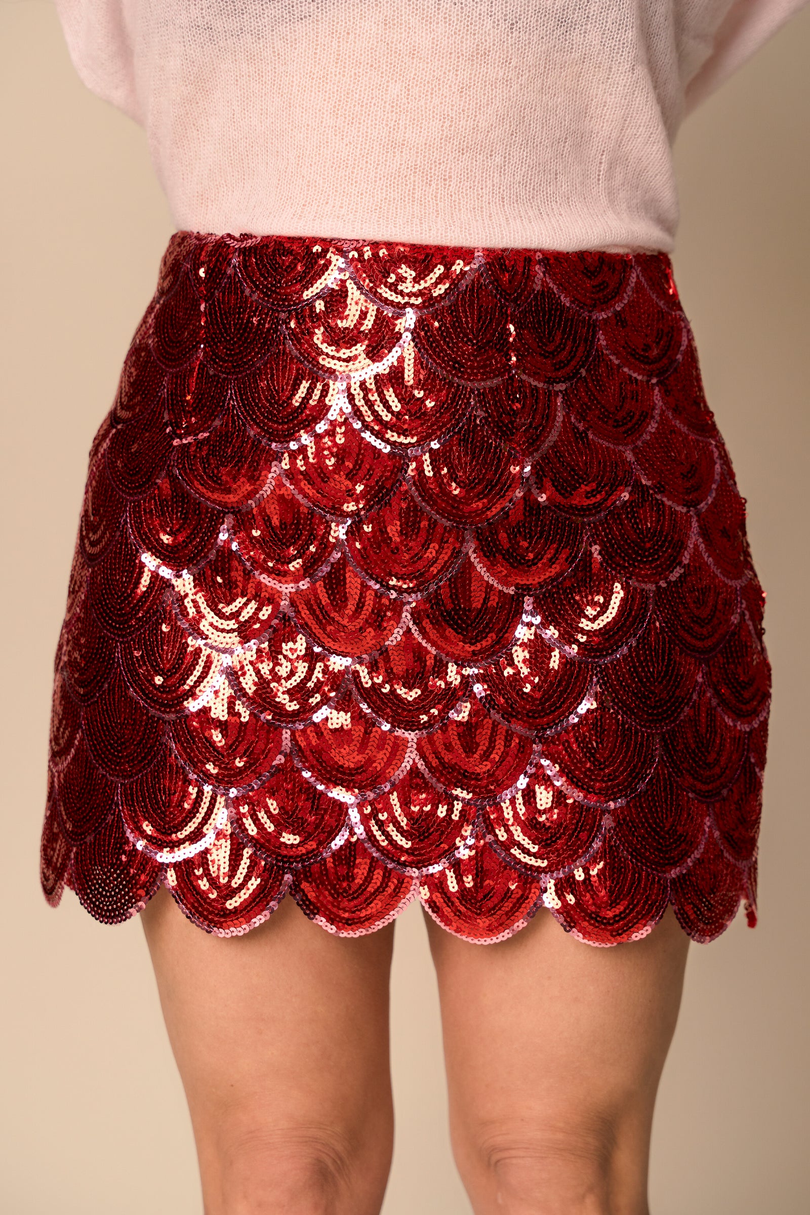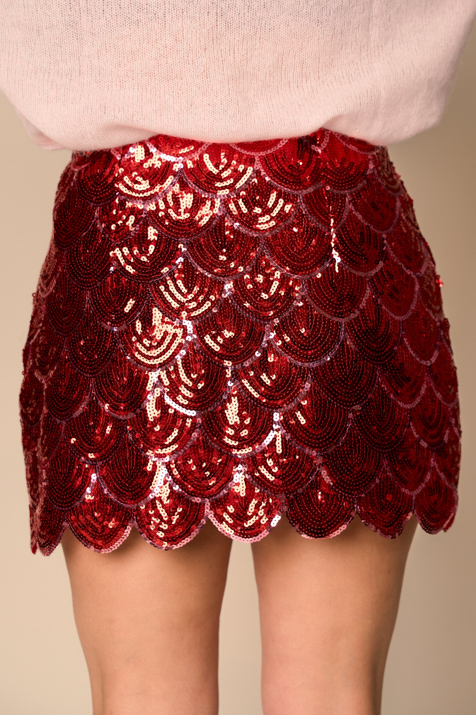 Falda de largo mini que se adapta al cuerpo de forma natural y confeccionada en tejido de lentejuela con el icónico e...