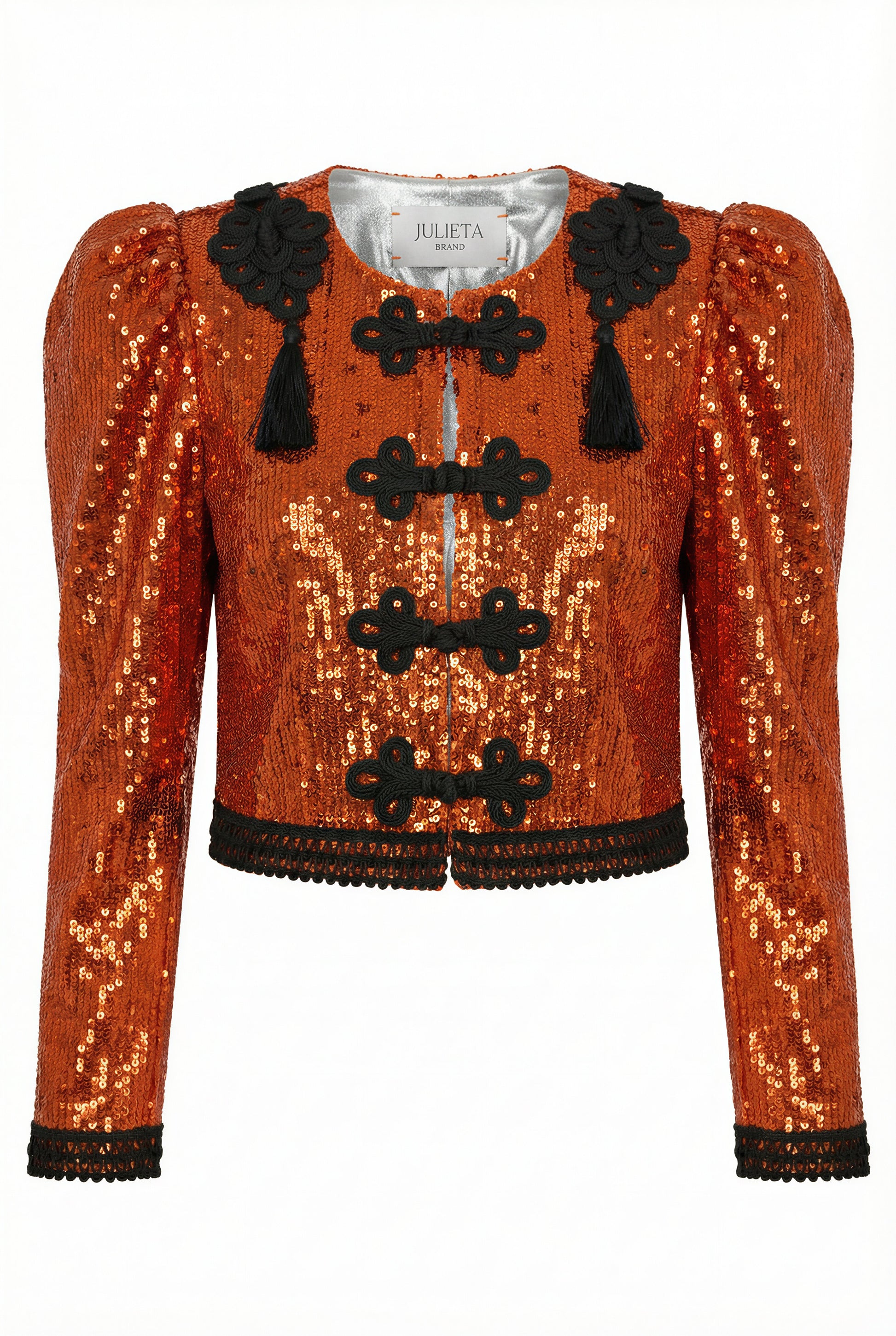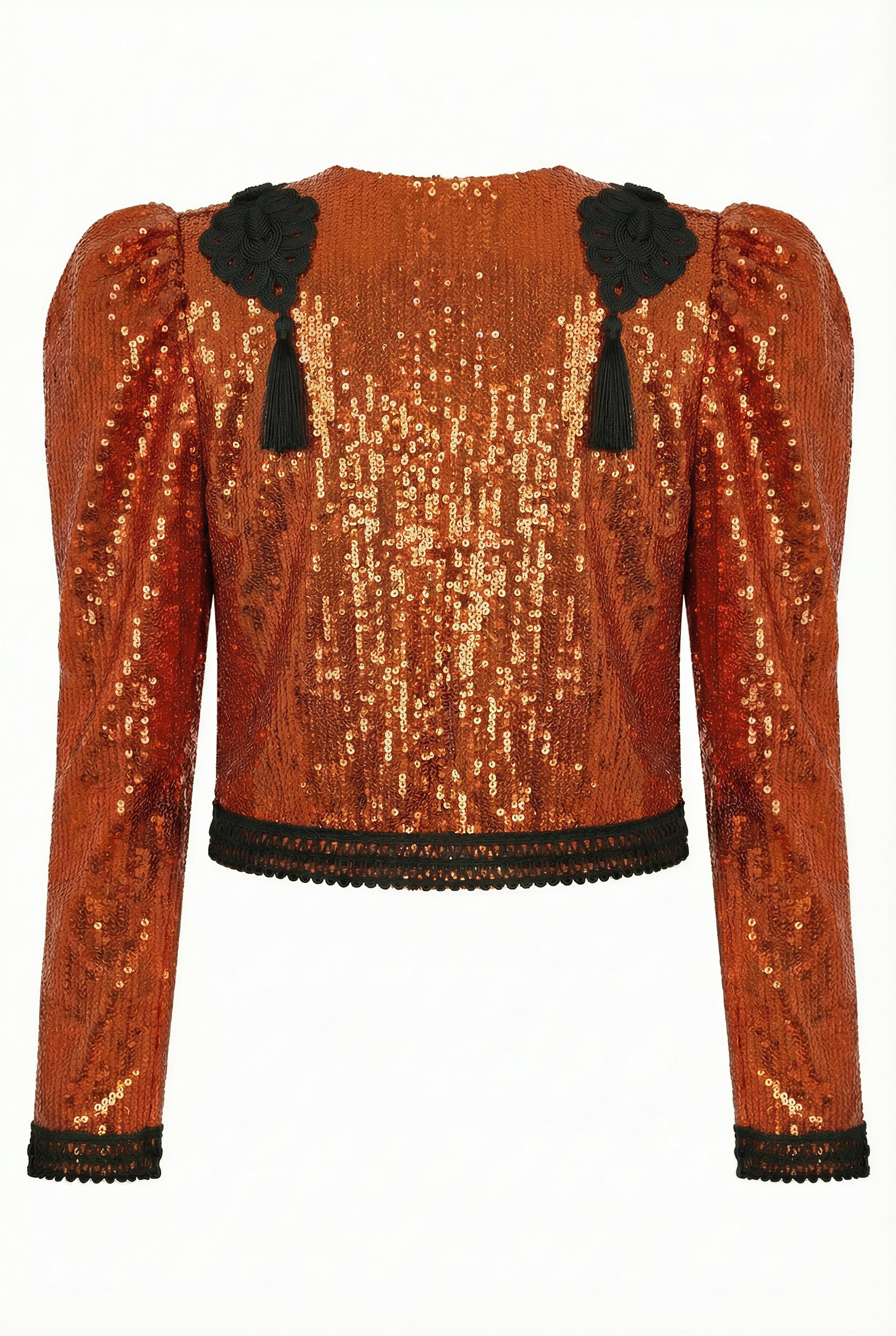 CHAQUETA GOYESCA EN LENTEJUELA NARANJA/COBRE